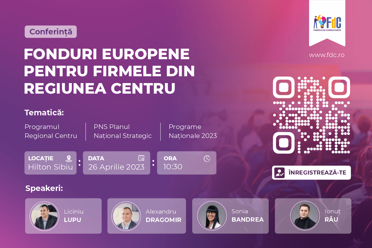 INVITAÈšIE: ConferinÈ›a “Fonduri europene pentru firmele din Regiunea Centru”, 26 aprilie a.c., Hilton Sibiu, ora 10:30